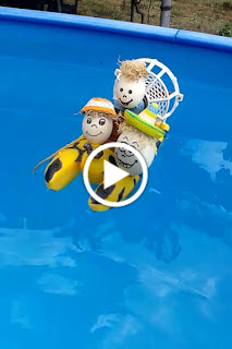 Una ambientación divertida con los juguetes de mi nieto y los huevos de mis gallinitas. |